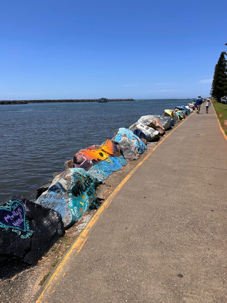 Of course, we couldn’t visit Port Macquarie without exploring the stunning coastline. We took a leisurely walk along the Hastings River, out to the Town Beach Lookout on the Tasman Sea. The path was lined with individually painted boulders, adding a splash of color to the already picturesque scenery. The views from the lookout were breathtaking, with the vast ocean stretching out before us.