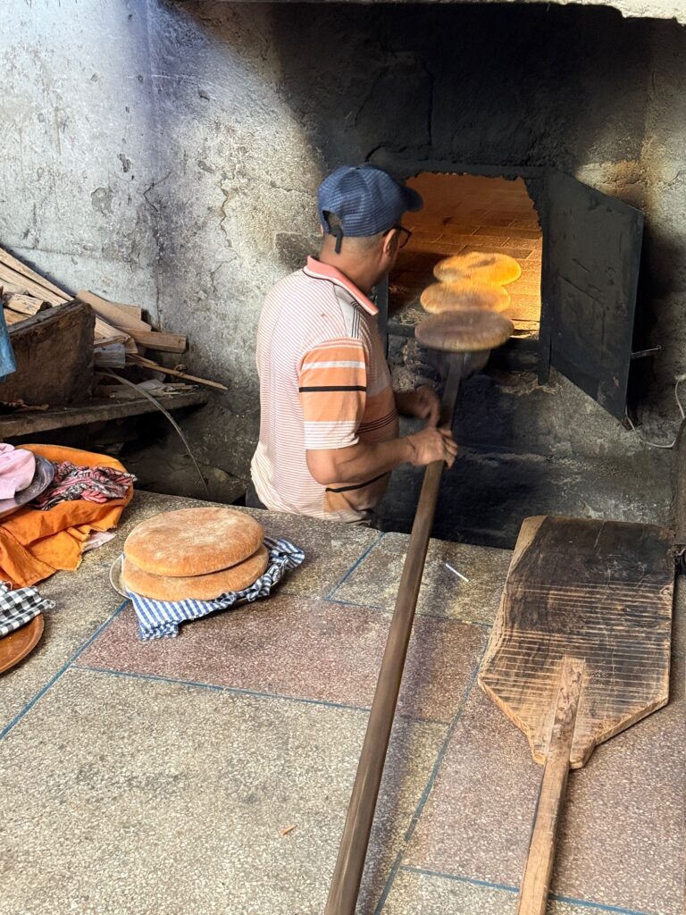 It’s so famous because the founder, Hadj Mustapha, is a revered local legend, and his method of cooking these dishes is steeped in tradition and perfected over decades. The mechoui involves roasting the whole lamb carcass in an underground, wood-fired oven for hours until the meat is ridiculously tender, falling off the bone with the slightest nudge. The tangia, on the other hand, is a slow-cooked stew (often lamb or beef) prepared in an earthenware urn that is traditionally cooked in the residual ashes of the local public bathhouse (hammam) fire—a low, steady heat that yields deeply rich, buttery-soft meat. It was, without question, the best lamb we tasted in the country—an authentic, rustic, and absolutely sublime experience.