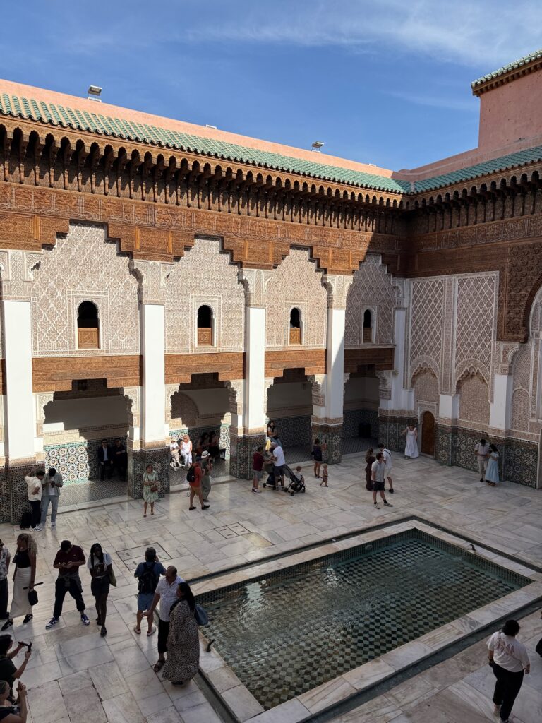 Our guide made the city’s past tangible, leading us to treasures like the Ben Youssef Madrasa, a breathtaking 14th-century Islamic college known for its stunning cedar carvings, stucco work, and intricate zellij (tilework). Walking through the former student dormitories and the massive prayer hall offered a profound look into the Medina’s scholarly heritage. We also explored the expansive grounds of the Saadian Tombs, a royal burial site from the 16th century, rediscovered only in 1917, where the craftsmanship on the chambers is simply astonishing.
