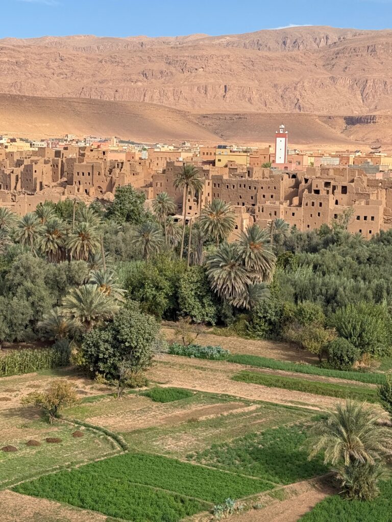 We made a brief stop at Ait Zineb, a taste of the old caravan route life before arriving in the famed desert outpost of Ouarzazate. Known as the “Door of the Desert” and a major film-making center, Ouarzazate felt like the final frontier before the deep desert. It’s home to Atlas Film Studios and has lent its rugged, timeless scenery to countless blockbusters. When you look at the surrounding landscapes, you’re looking at the backdrop for classics like Lawrence of Arabia, the epic scale of Gladiator, and the ancient world of The Mummy. Even parts of the TV series Game of Thrones (as the city of Yunkai) were filmed in the area. It’s a city of powerful kasbahs and an undeniable desert glamour, yet you can feel the ancient history of traders and travelers in the air.