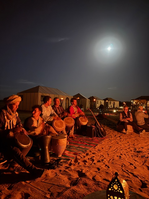 The evening culminated around a crackling campfire, where we gathered with the other guests and the incredibly hospitable staff. The air filled with the enchanting sounds of traditional Berber music, played by our talented hosts. Their soulful melodies and rhythmic drumming created an atmosphere of pure joy and camaraderie. Sharing stories and laughter under the vast, star-studded sky, we felt a deep connection to this ancient land and its welcoming people.